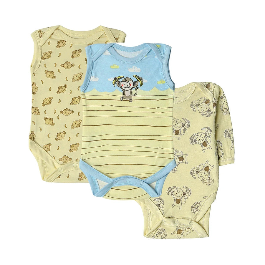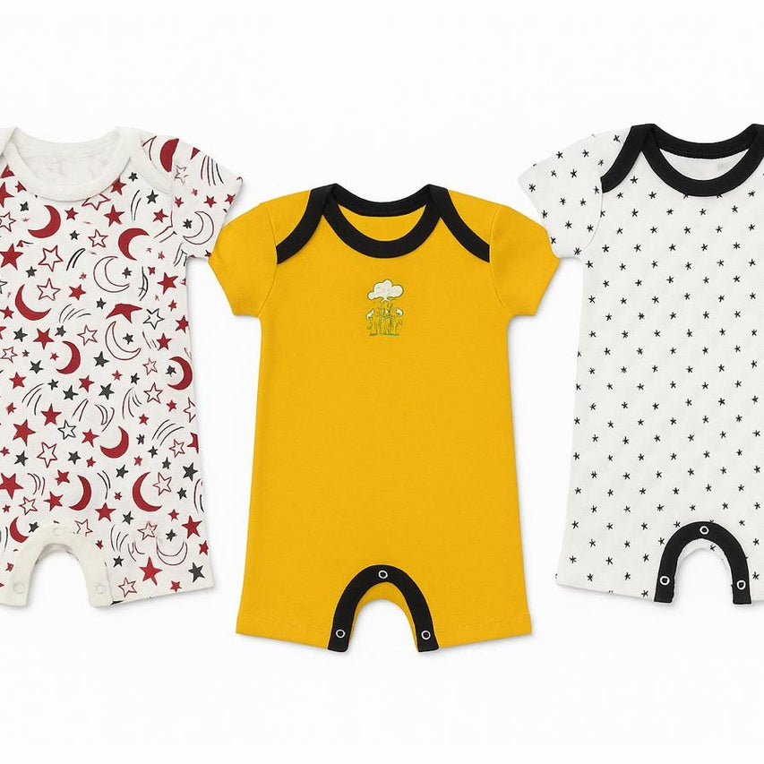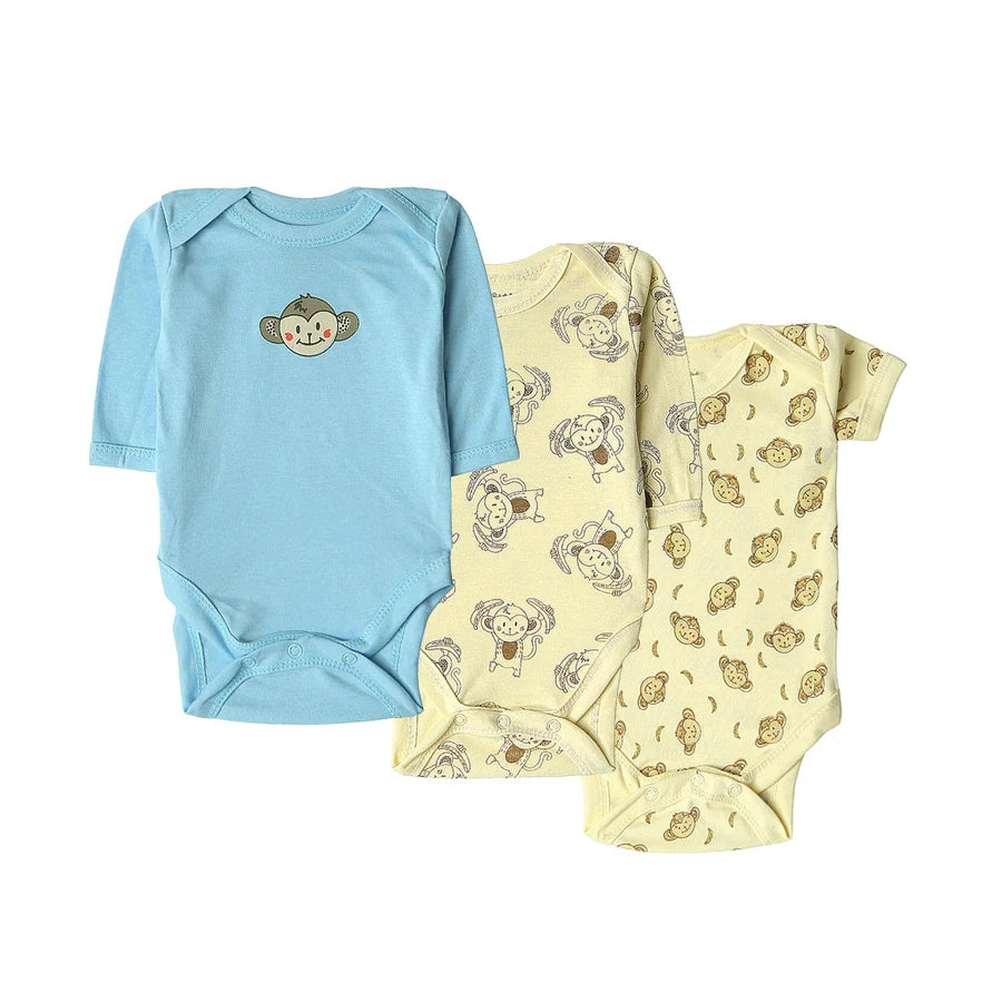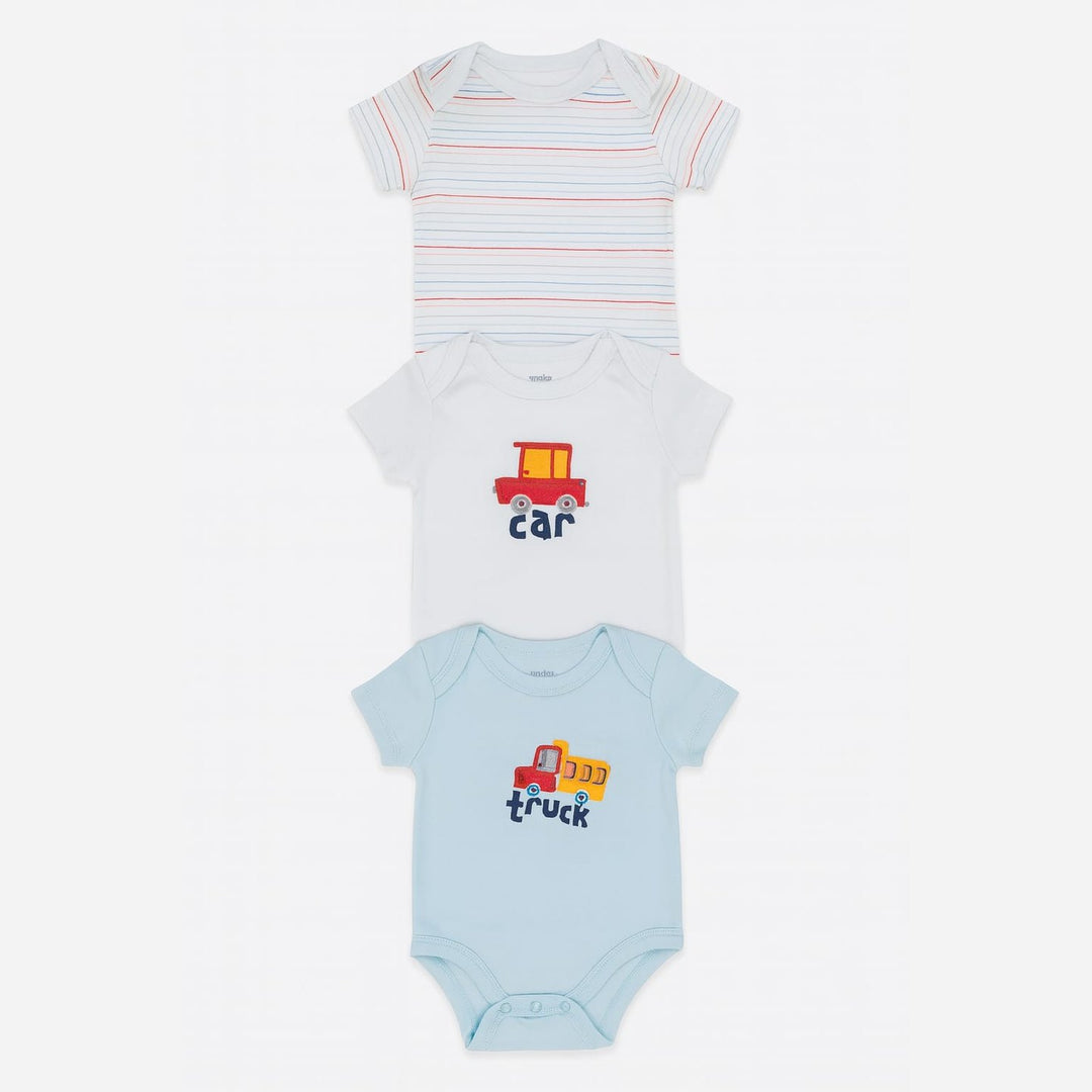 Baby Short-Leg Romper Pack Of 3 Multi Design Blue