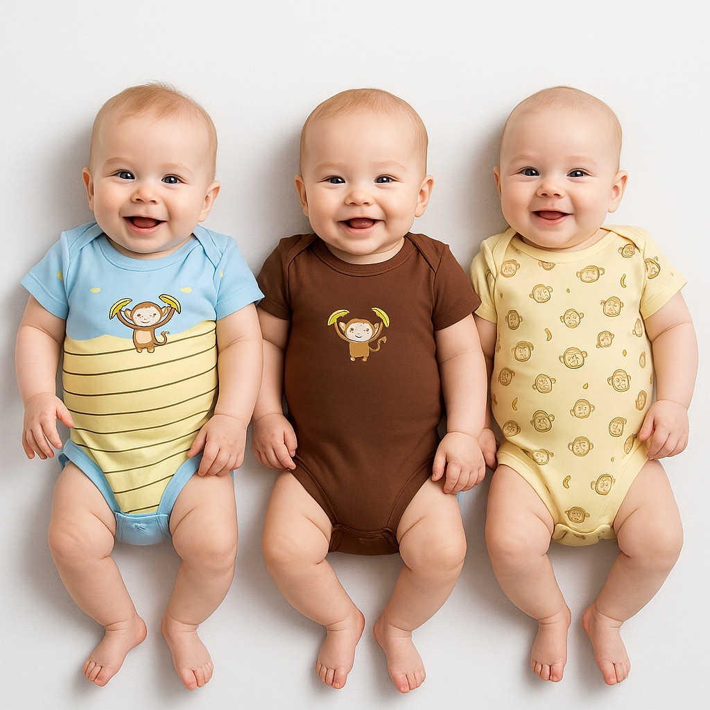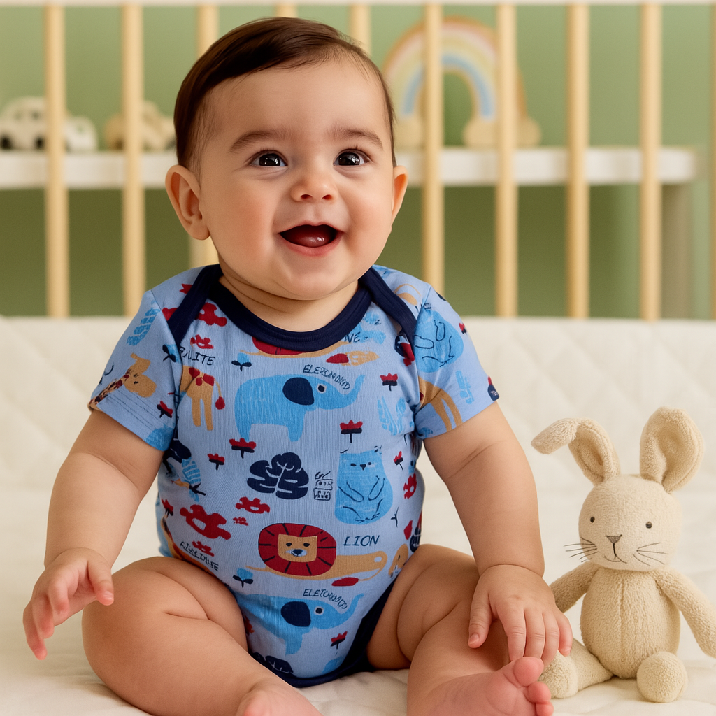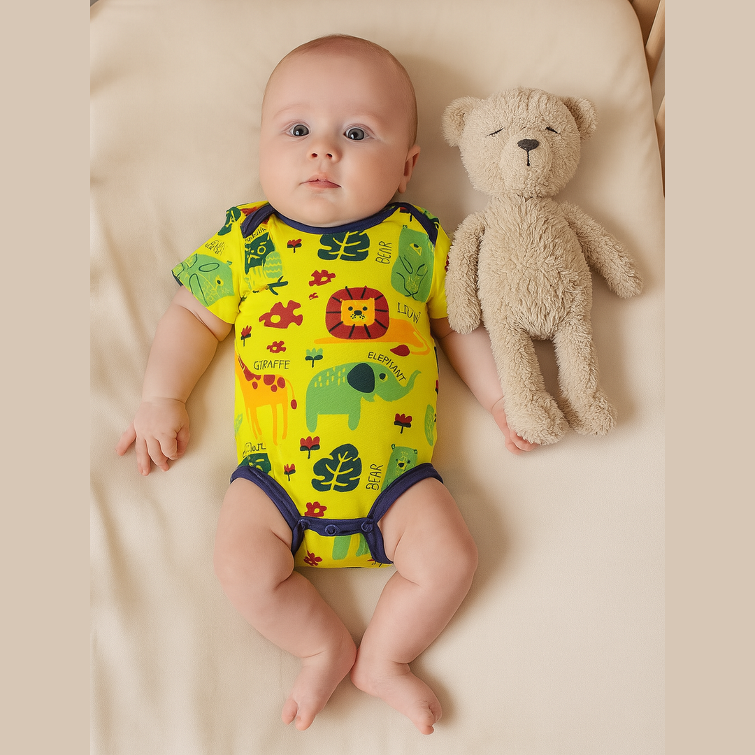 Baby Short-Leg Romper Pack Of 3 Multi Design Blue