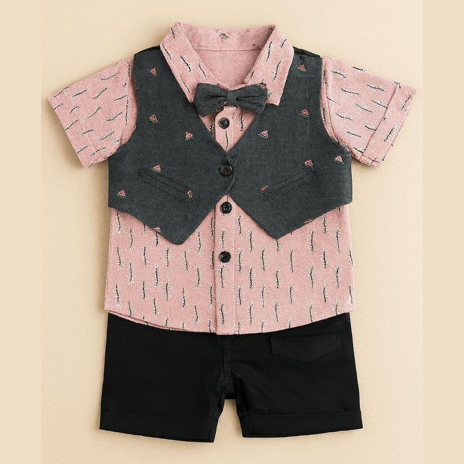 Charming Pink & Charcoal Waistcoat Set Œ 3-Piece Baby Boy Formal Outfit