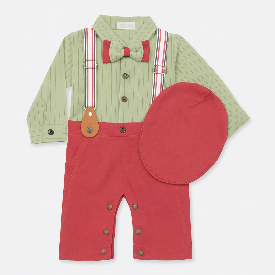 Vintage-Inspired Baby Boy Suspender Outfit With Bow Tie & Cap 3-Piece Set