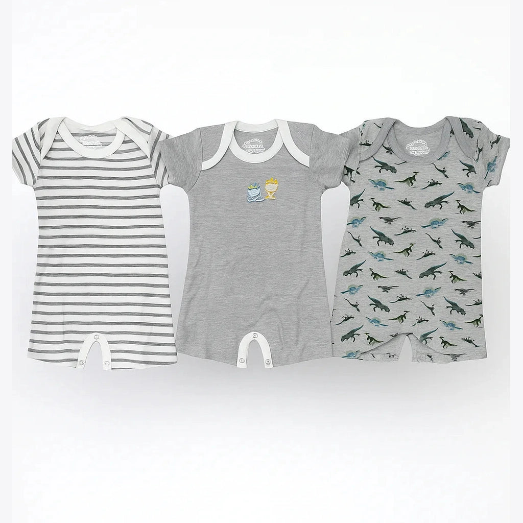 Baby Short-Leg Romper Pack Of 3 Multi Design Dino Grey