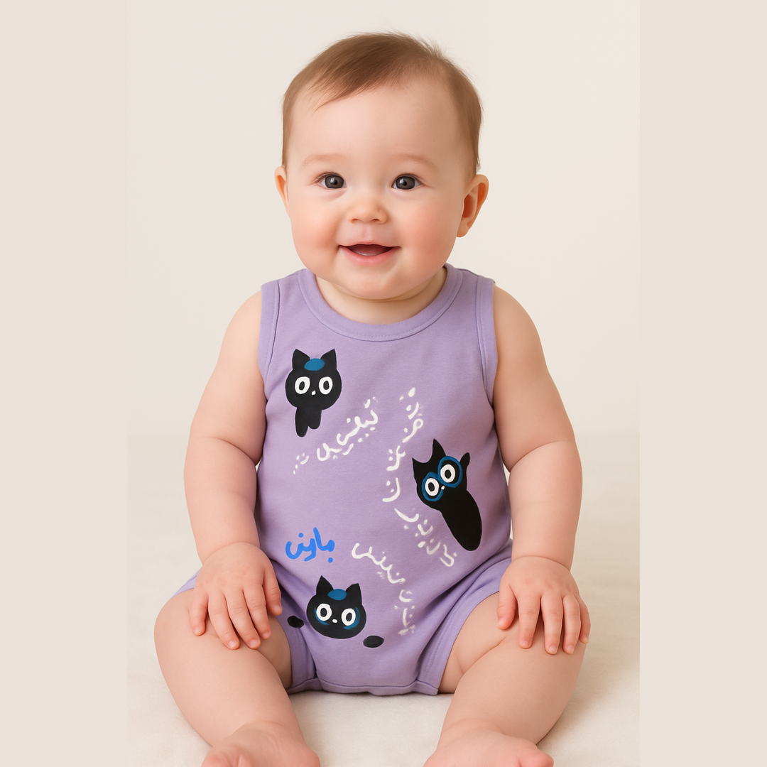 Ghousla Black Cat Shorts Sleeve Romper Purple
