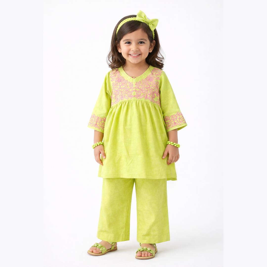 Lime Zest Embroidered 2PCS Cotton Frock Suit
