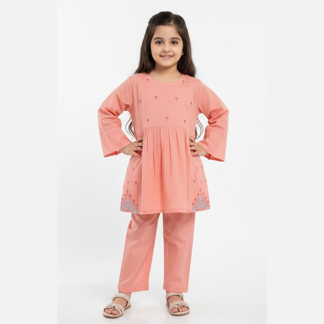 Peach Perfection Embroidered 2PCS Frock Suit
