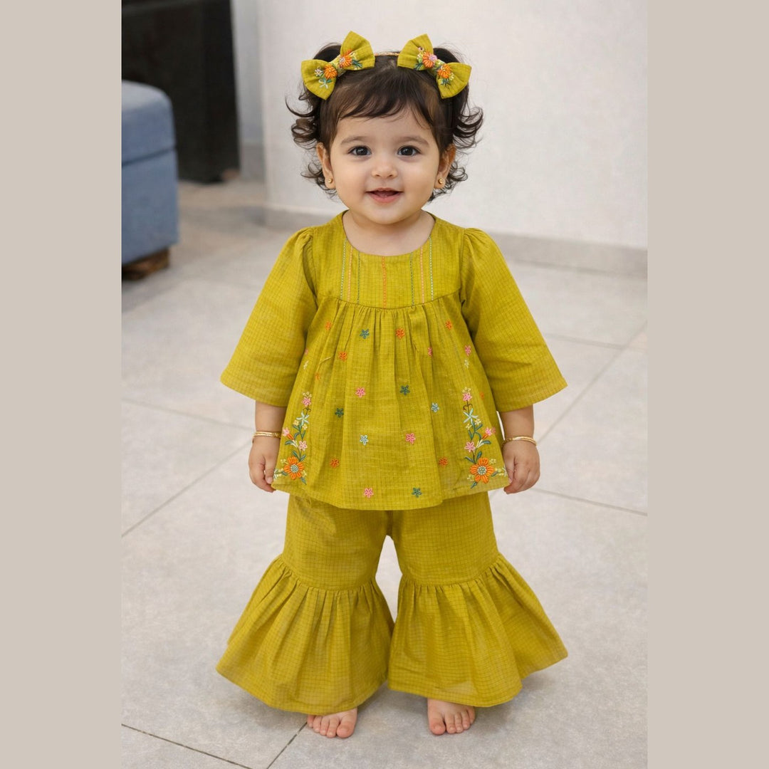Mustard Meadow Embroidered 2PCS Gharara Suit