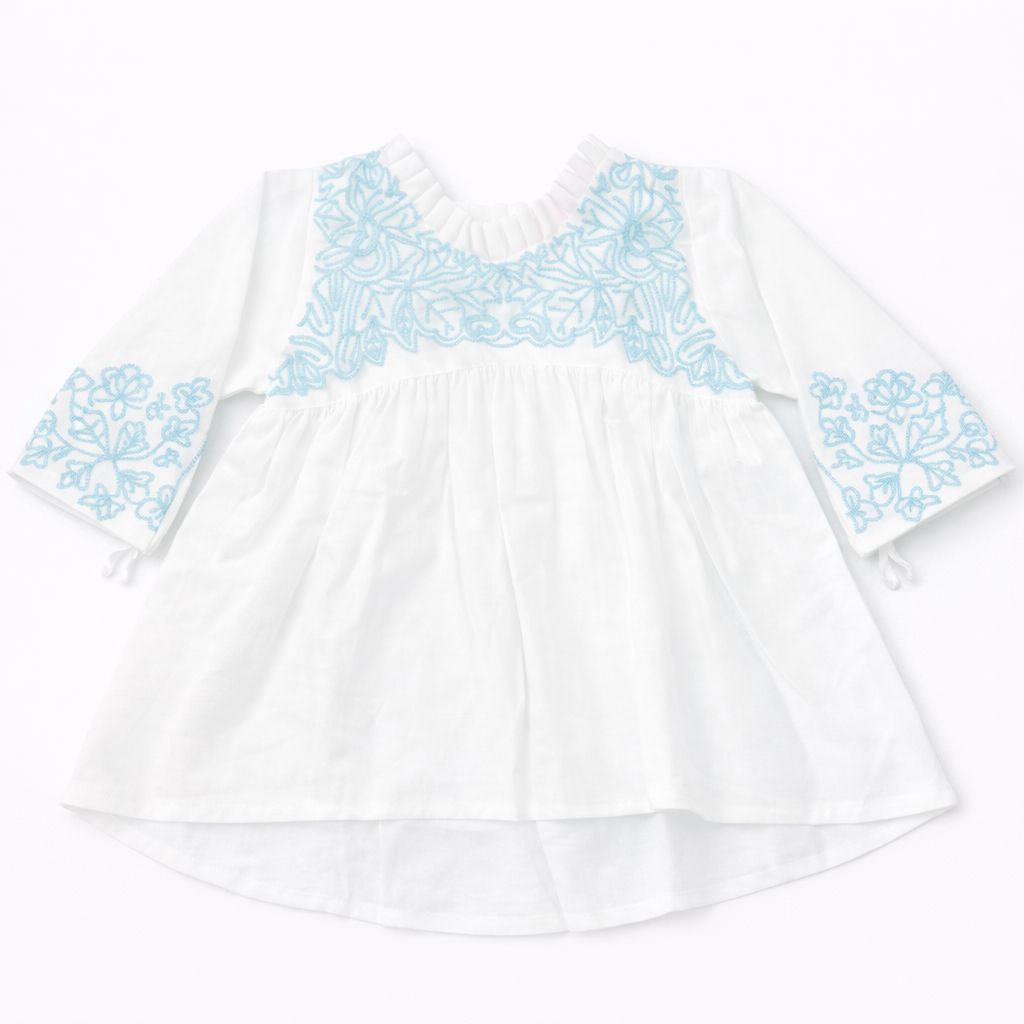 This elegant 2-piece set features a crisp white premium cotton-linen blend frock beautifully detailed with intricate sky blue floral embroidery across the neckline and sleeves. The ensemble is paired with matching straight-cut trousers and offering a fresh and sophisticated look for any summer occasion.
