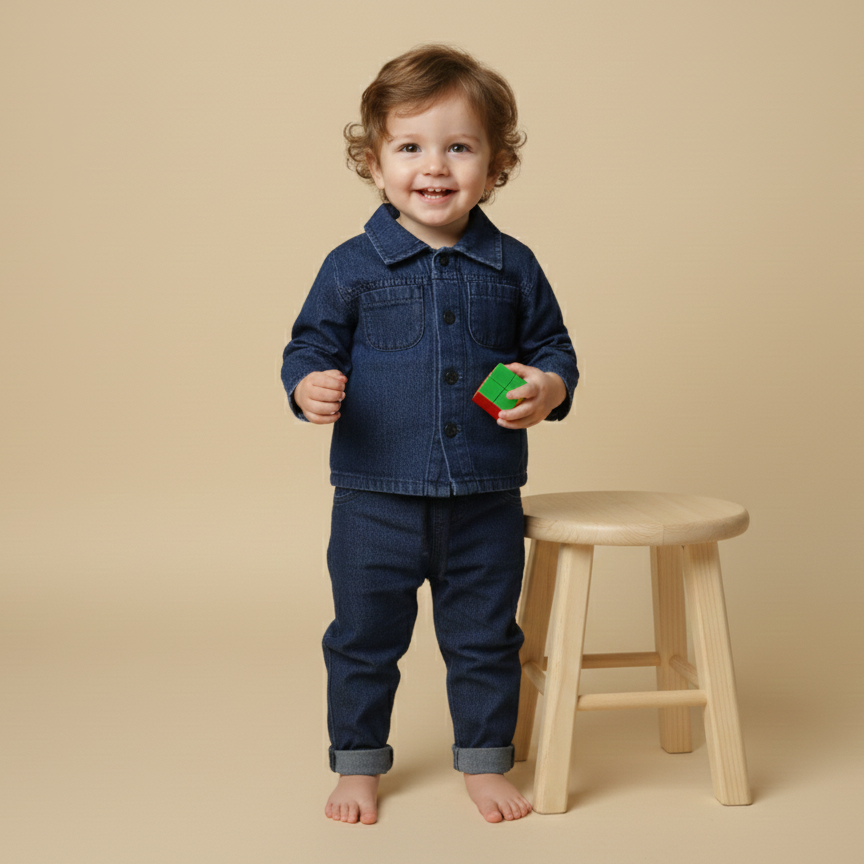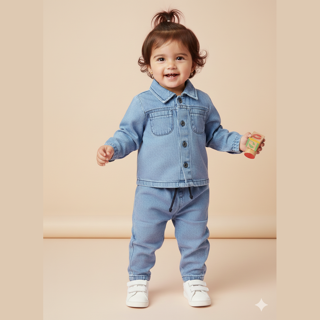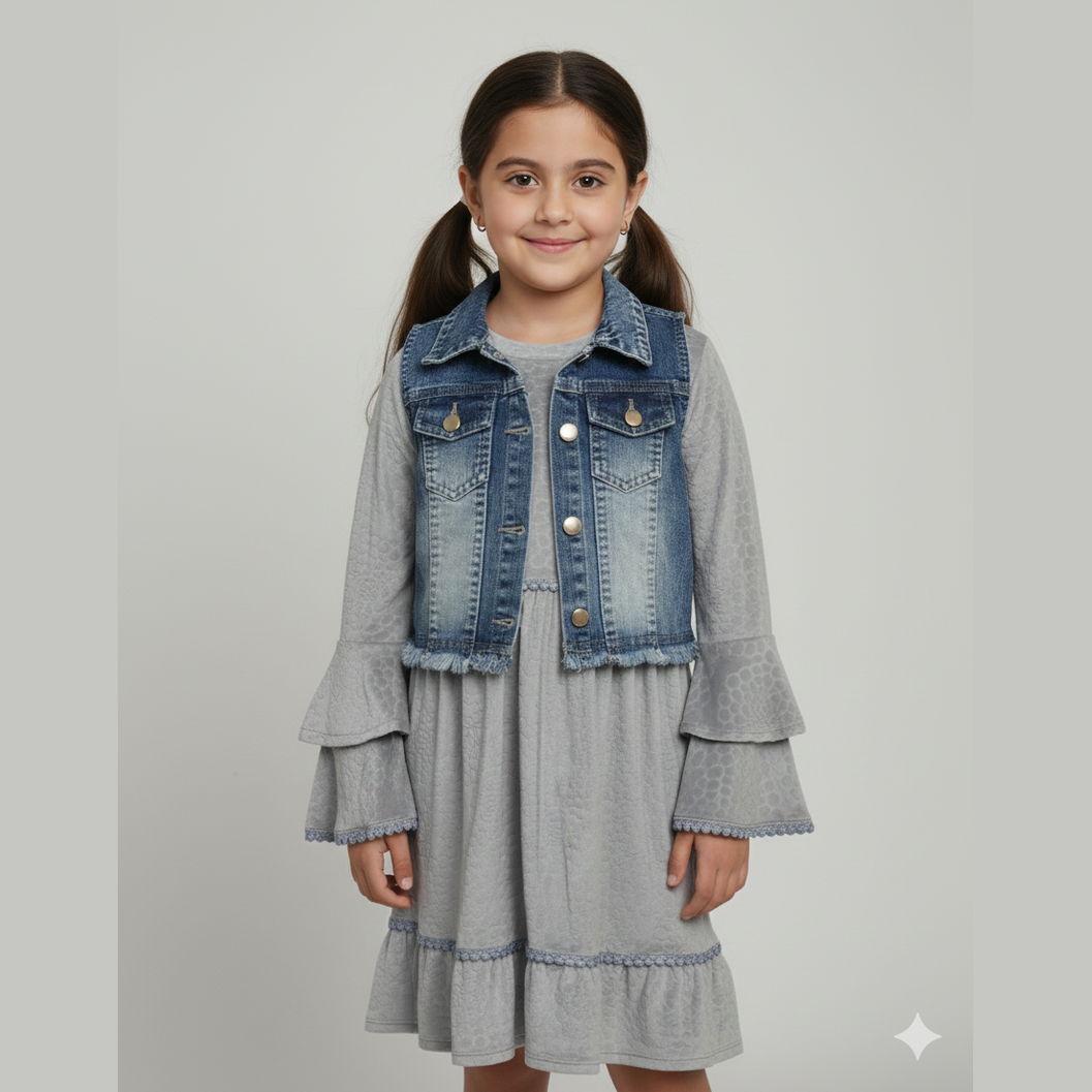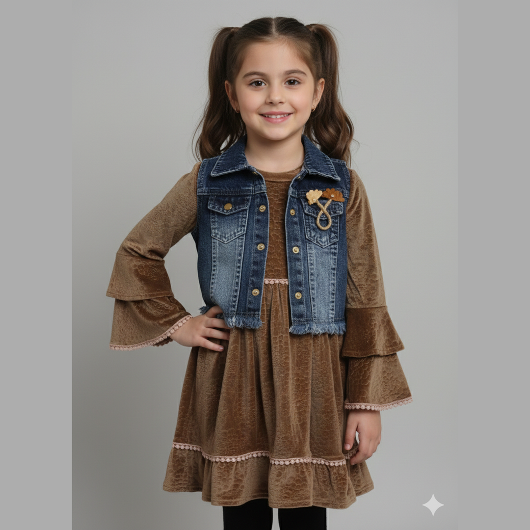 Baby Girl Velvet Dress With Denim Jacket Set