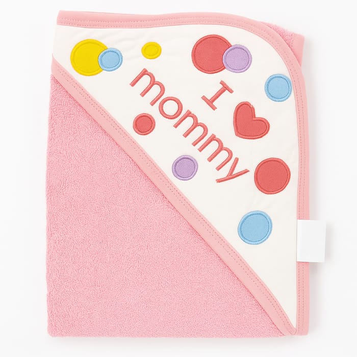 I Love Mommy Hooded Baby Towel Pink With Colorful Polka Dot Embroidery